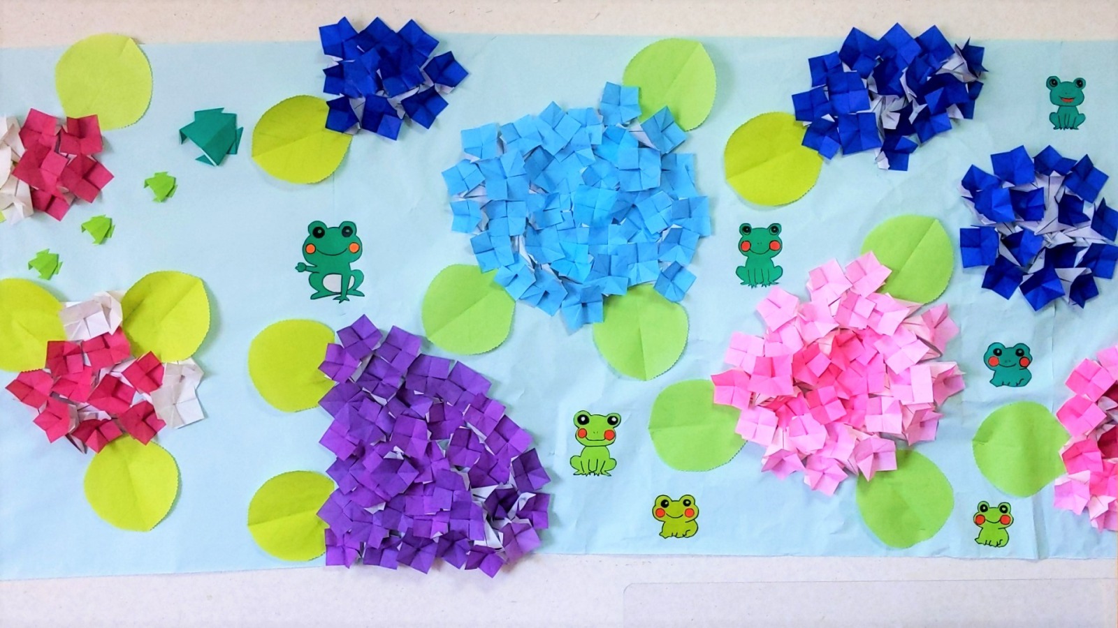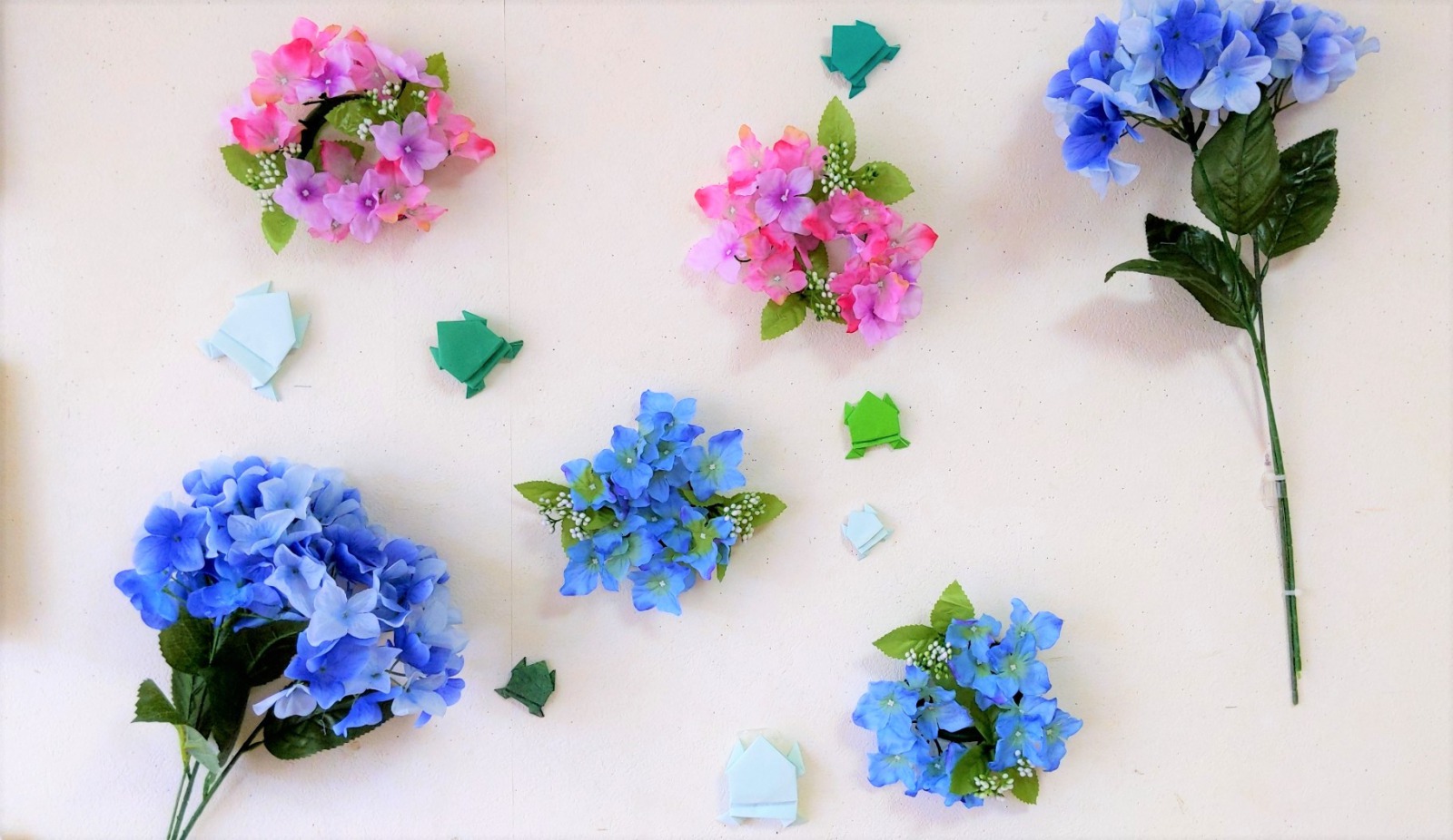 もうすぐ6月ですね。はぴね弥富の各フロアにはたくさんの紫陽花がもう咲いています✨ 梅雨はなんとなく嫌なイメージを持たれる方が多いかもしれませんが、施設内は何となく明るい感じがします。 お庭には本物の紫陽花が梅雨が待ち遠しいように咲いています(⌒∇⌒)
