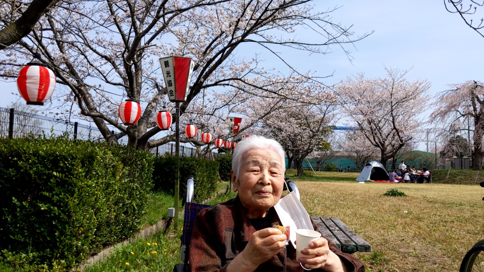 しかも長く続く桜並木を見ながらのドライブに、ご入居者様も喜んで