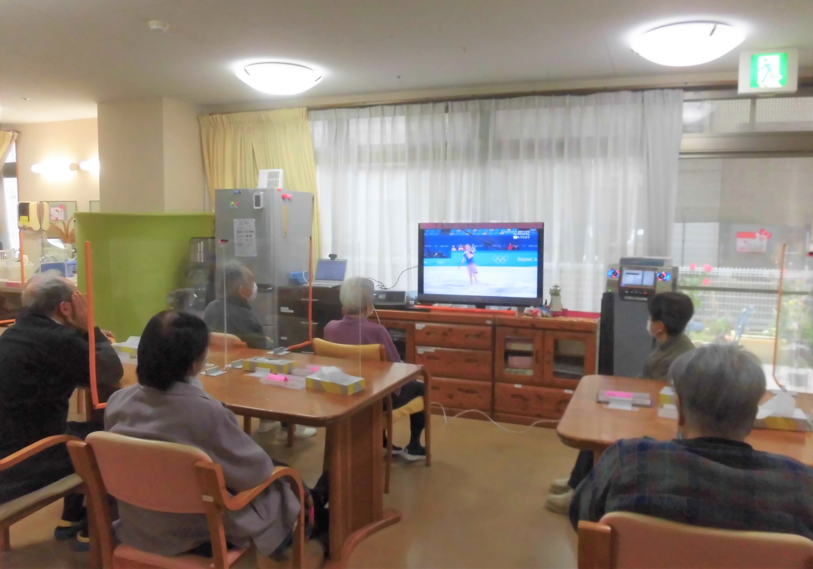 オンラインリハビリ体操前にTVでフィギュアスケートを