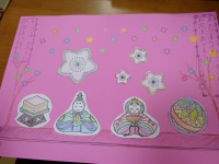 ひな壇を描き、歌詞まで飾りつけられました。