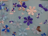 雪の結晶を折り紙で作りました。