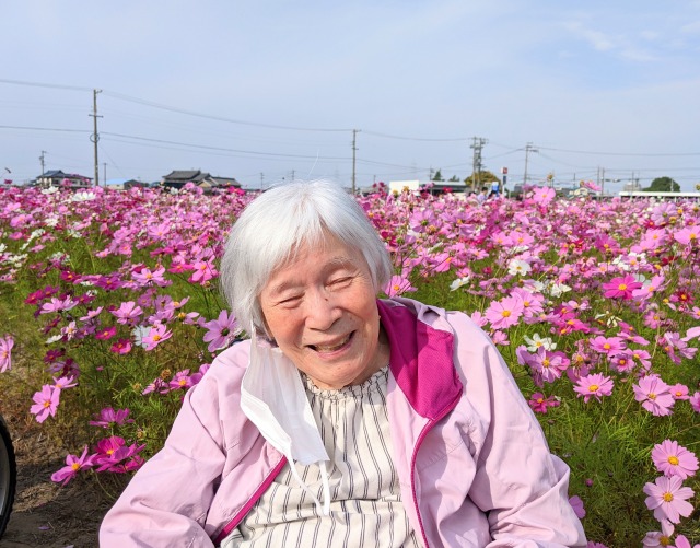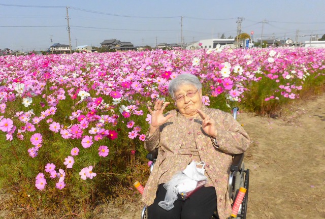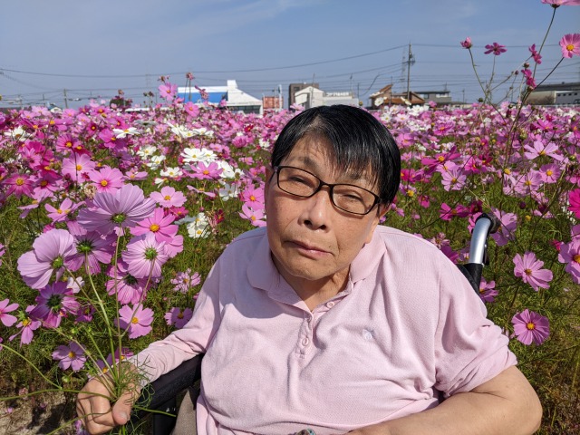 本日も秋桜畑にお連れしています。連休とあってみ人も多かったですが、会う方々と「きれいね~」と話しをするのも楽しかったようです(⌒∇⌒)