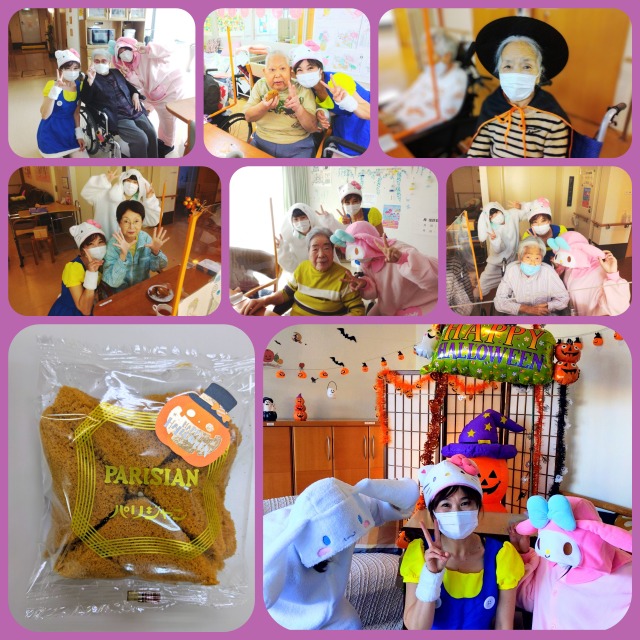 今年はキティちゃんがマイメロとシナモンロールを連れて遊びに来てくれました(笑)皆さんに地元では有名な洋菓子パリジャン(秋限定)をお配りしました(⌒∇⌒)