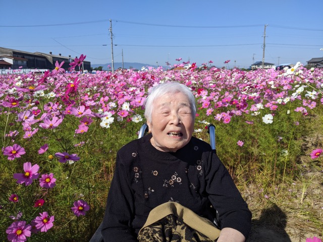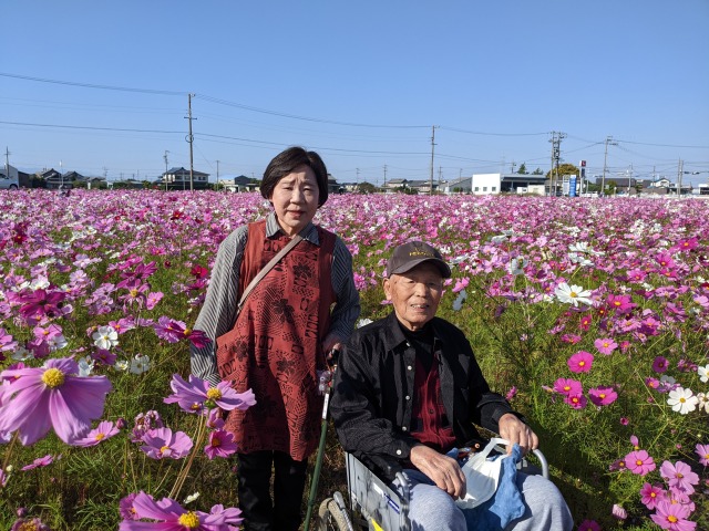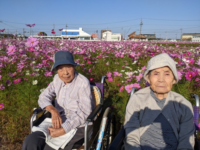 例年よりやや遅めですが秋桜が満開とのことでご入居者様をお連れしました。まるでお花の海のように綺麗に咲いていました。皆様、とても喜んでいただきました(⌒∇⌒)