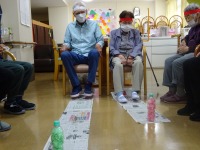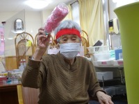 音楽療法で歌いながらハンカチーフを振ったり、丸めたり、投げたりして表現する体操をしました。これがなかなか難しい~💦でもいい運動になりました(⌒∇⌒)