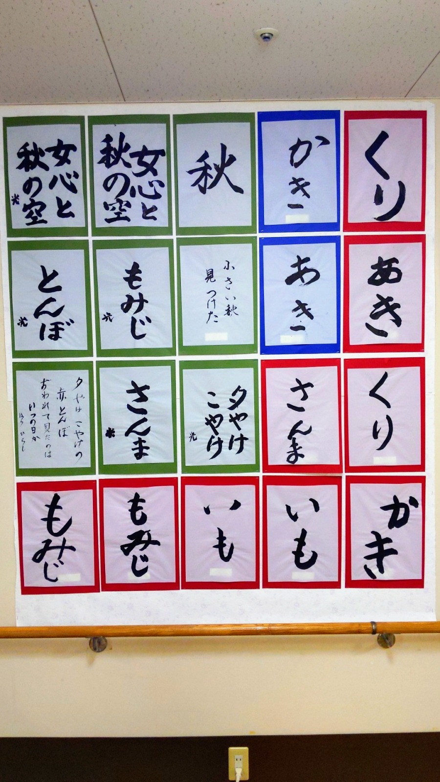 主に秋をテーマにした書道作品を展示させていただきました。「女心と秋の空」と(笑)。また、テーマは違いますが、102歳の作品「のびり くよくよしない」は沁みますね(⌒∇⌒)
