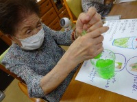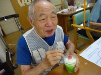 本日は2階で噴水フルーツポンチを実施しています。シュワ―っと花火みたに吹き出てきたのを喜ばれていました。アイスの実をのせて美味しくいただきました(⌒∇⌒)