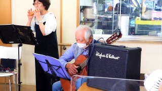 5月8日から新型コロナ感染症が5類になったこともあり、これまでひかえていたボランティアさんによる演奏会を開催しました(デイサービス)♫ まだマスク越しではありますが、一緒に歌われ楽しまれていました!今日はデイサービスで演奏してもらいましたが、今年度は入居されているフロアでも度々演奏していただく予定です(⌒∇⌒)