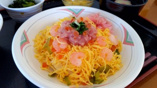 あかりをつけましょ~♬今日は楽しい雛祭り~♬ということで、本日のランチはちらし寿司、おやつはイチゴのデザートと雛あられをご用意しました(⌒∇⌒)