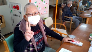 デイサービスでのピンポン早押しクイズ大会でした。皆さん、押すよりも答えるほうが早い(笑)