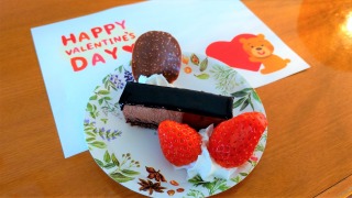 そう、本日はバレンタインデーということで「手作りチョコレートケーキ」をご用意しました。「あら~、今日はバレンタインさんのお誕生日かい?」と(笑)