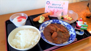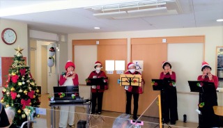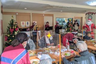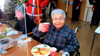 今日はクリスマスパーティでした!今年もコロナ感染症対策をしながらの開催ではありましたが、アコーディオンサークルのコンサートを聴きながら、厨房さんが用意してくれた美味しい食事を楽しみました。食後にはビンゴ大会、サンタさんからのプレゼントと喜んでいただきました(⌒∇⌒)