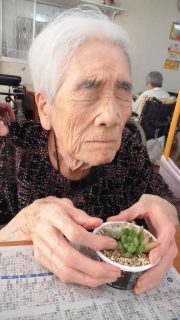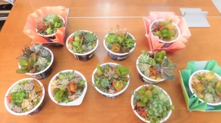 多肉植物の寄せ植えをしました。皆さんの手を震わせながら小さな多肉植物を丁寧に植えていました。出来上がると「かわいい〜」と喜ばれていました(⌒∇⌒)