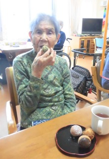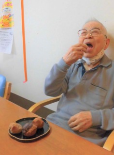 ご入居者様に「本日のおやつはミスドで!」とお伝えすると、「???・・・」といった表情をされていましたが、お配りすると「わぁ~♡」と喜んでいただきました(⌒∇⌒)