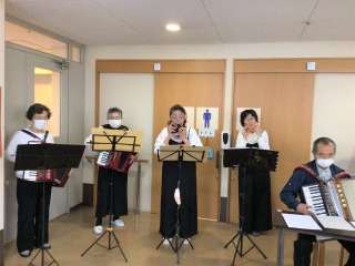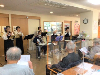約3年ぶりに音楽ボランティアの方に来ていただきました!以前のように声を出して合唱のようなことは出来ませんが、「やっぱり生演奏はいいなぁ~」と喜んでいただきました(⌒∇⌒)