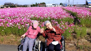 今日から1週間、ご入居者様をコスモス畑へお連れします🚙新型コロナウィルス感染症予防のため外出を自粛していただいていただけに、とても喜んでいただきました。今日は日曜日とあって、ご家族連れも多かったのですが、「こんにちは〜!」と声を掛けてくださることが嬉しかったですね(⌒∇⌒)