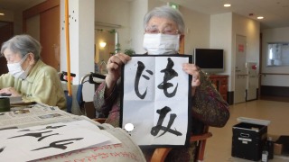本日は月に1度の書道教室の日でした。皆さん、書かれているときはおしゃべりもせずに真剣に書かれています。「疲れるけど、いい時間だよね」と(⌒∇⌒)