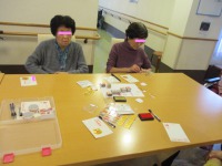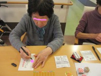 無地の年賀状にスタンプやシールなどを思い思いに付けて作るのですが、皆様相談しあいながらオリジナリティ溢れる素敵な年賀状が作れたと思います。