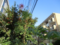 実はもう一本、もっと立派な皇帝ダリアが植わっていたのですが、少し前の強風被害によって折れてしまったので、この一本は貴重です。しかも背丈も2mは超えて健気に咲いているのでこのままもっと大きく成長してくれることを願っています。