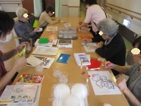 ご入居者様と一緒にオリジナルキティちゃんグラス作り!