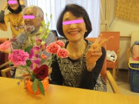 先生にお越しいただき、バラやカーネーションなどの花を思い思いに活けてらっしゃいました。