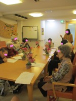 今月は参加者だけでなく見学者も来られ、ますます盛んになっているフラワーアレンジメント。出来栄えを確認しあった後は皆様どこへ置かれるのでしょう。お部屋を見に行くのも楽しいかもしれませんね。(笑)