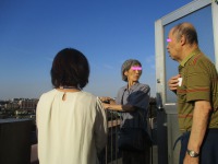 3階からの非常階段を開けて外を眺めていると、興味津々に近づいてくるお二人の姿。外に出て景色を見ると見覚えのある建物があったようで、「あの高い建物はどこにあると思う?」「長津田ですか?」「そうなんだよ」なんていう会話が生まれました。さらに「あそこのモデルルームを見に行ったことがあるのよ」と実際に見学もされたことがあるとのこと。
