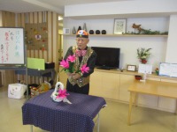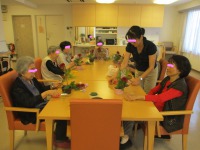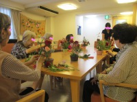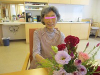 昨日はマジックショーで花づくしでしたが、今日は「フラワーアレンジメント」を行いました。