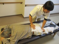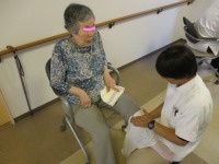 ツボ押しについて話を聞く講座班と実際に施術を受ける班と2班に分かれて1時間行いました。