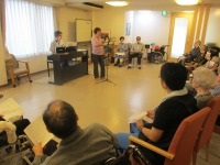 この「脳トレ」は先生にお越しいただいて、歌を歌ったり、季節にまつわる話をしながら過ごす1時間です。