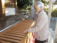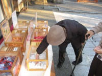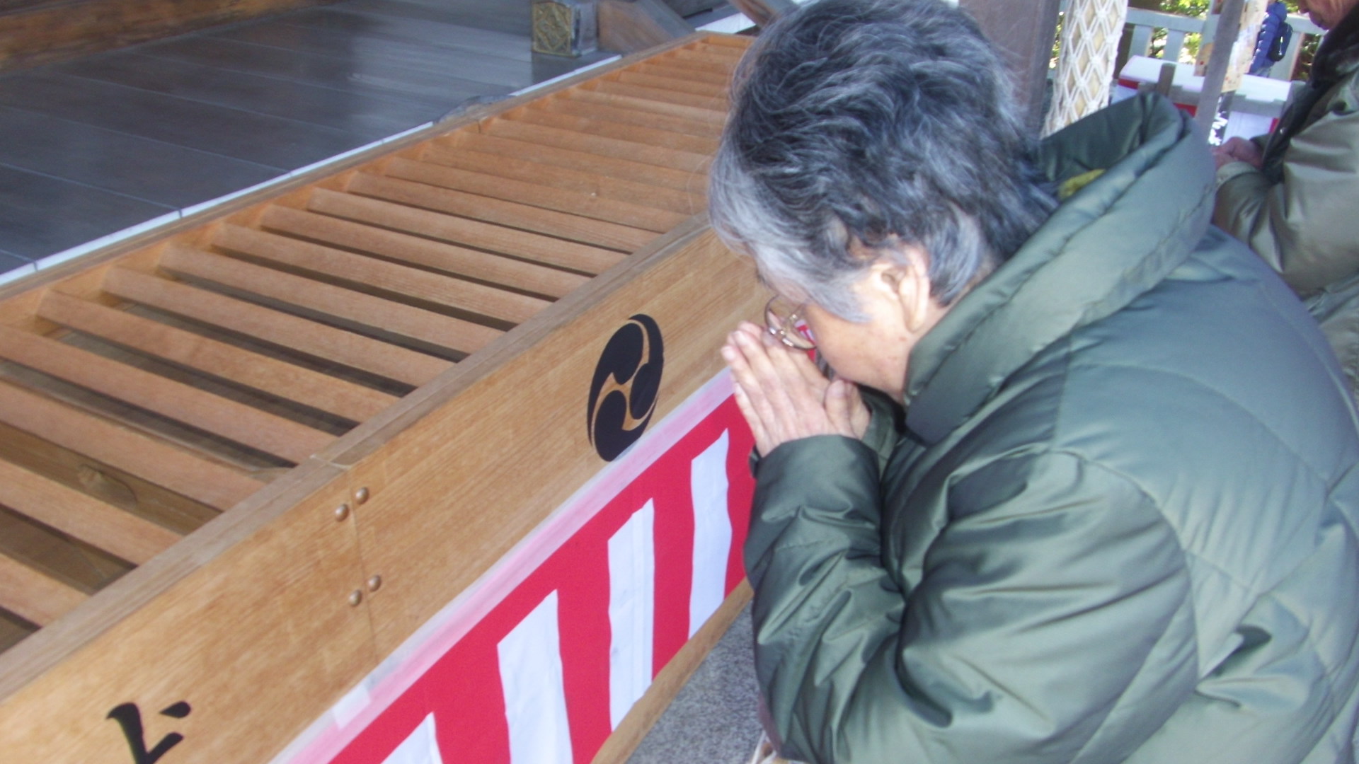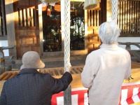 お賽銭を入れて鐘を鳴らしてからの祈念の流れ。身についていらっしゃる作法が素敵です。その後はおみくじを引き、見事大吉を引き当てられていましたので今年はいい年になりますよ~。(笑)