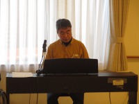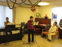 誕生会に先立ち、いつもお越しいただいているバンド演奏のメンバーとご入居者様の皆さんで一緒に歌を歌って和気あいあい。