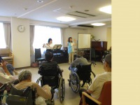 曲目は「ムーンリバー」「エーデルワイス」「ある愛の詩」etc…。演奏の合間には皆さんで歌も歌います。「浜辺の歌」「憧れのハワイ航路」などこちらは和テイストで♪聴いて歌って優雅な音楽会となりました(*´∀`)♪