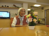 フラワーアレンジメントの先生が来てくださいました。完成したお花を前に思わずにっこり(^-^) いいお顔されてますね❀