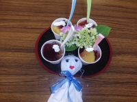 皆さんでゼリーの型抜きに奮闘し、オレンジ、りんご、ぶどうの彩り豊かな3色盛り合わせができました。