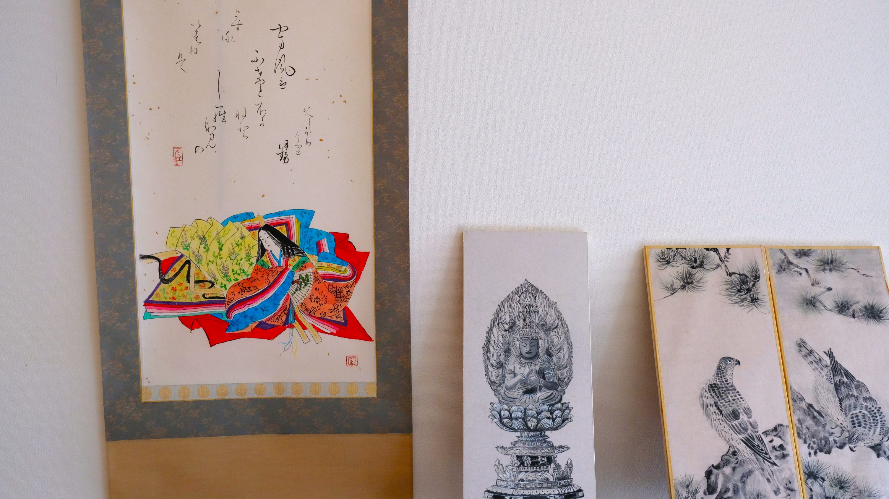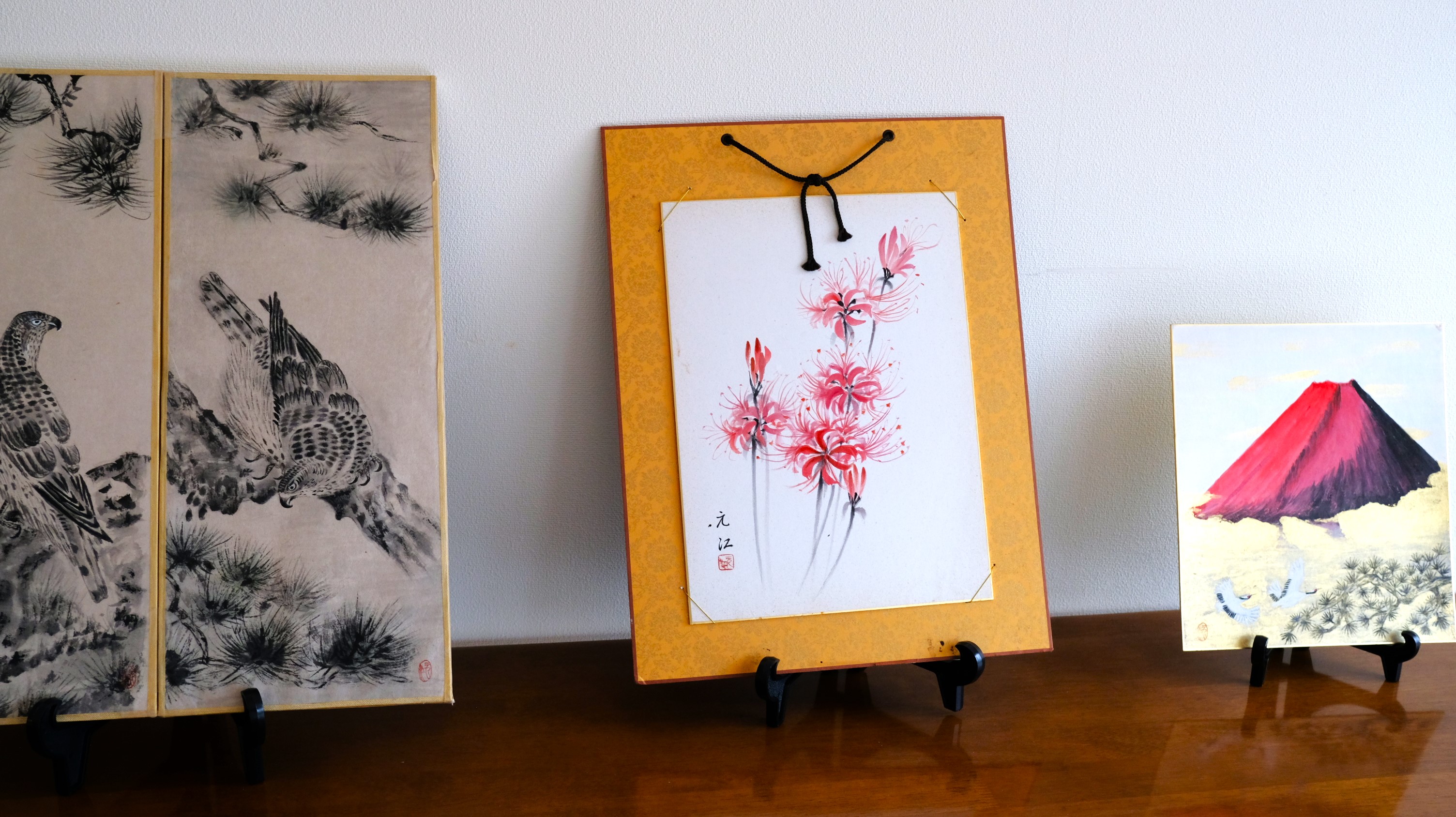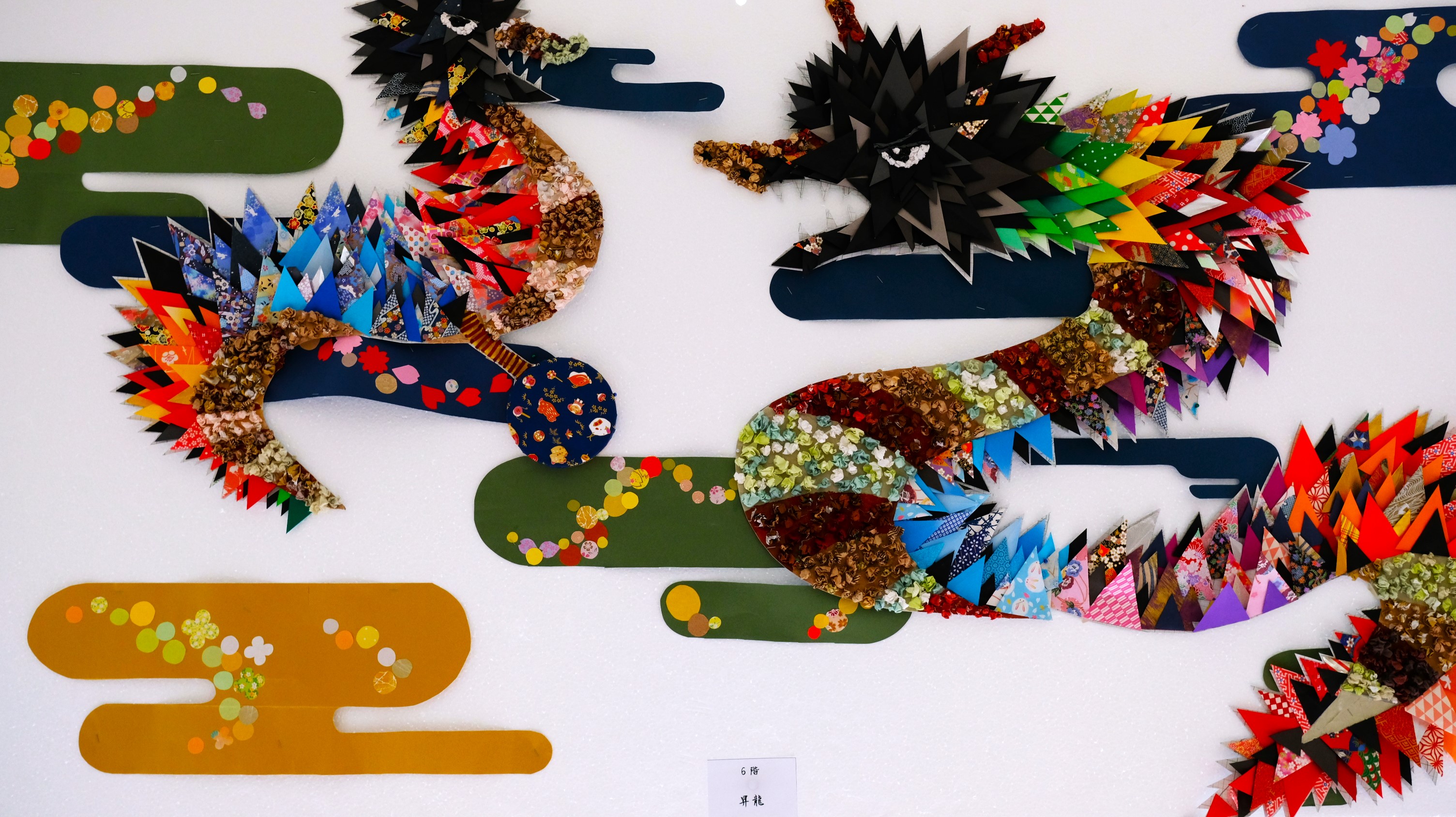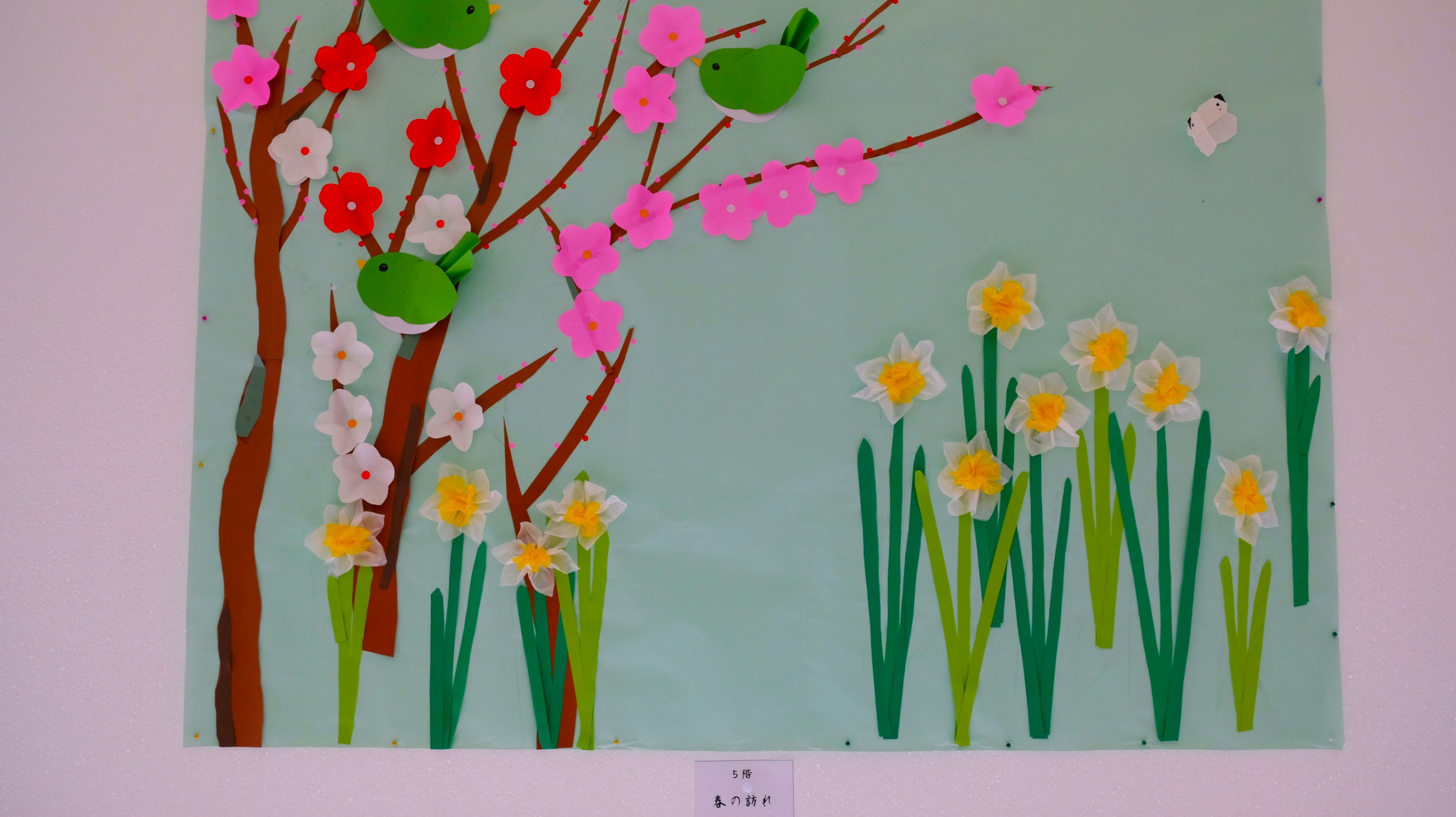 ただいまライフコート春秋では、1階ロビーにおいて、入居者様とスタッフ共同制作の作品を展示する作品展を開催しています。