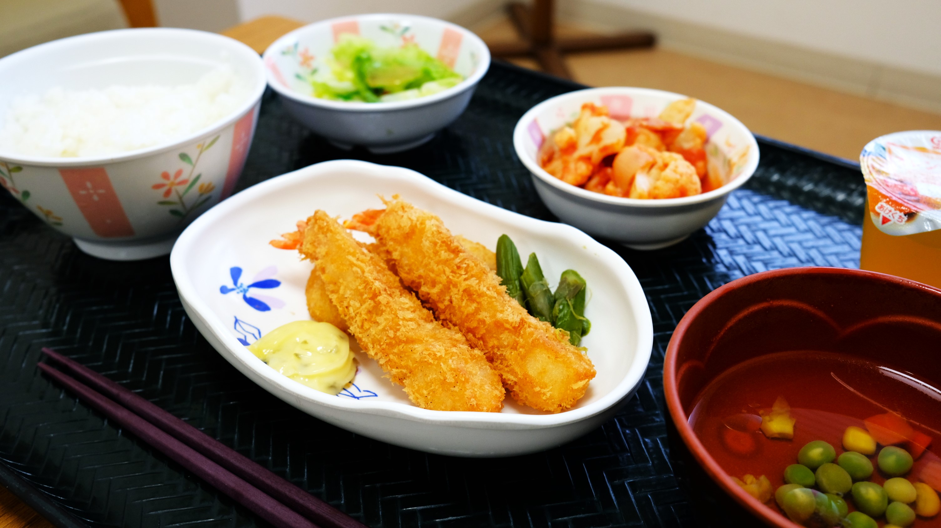 本日の昼食は選択メニュー、こちらは魚のメニューです!