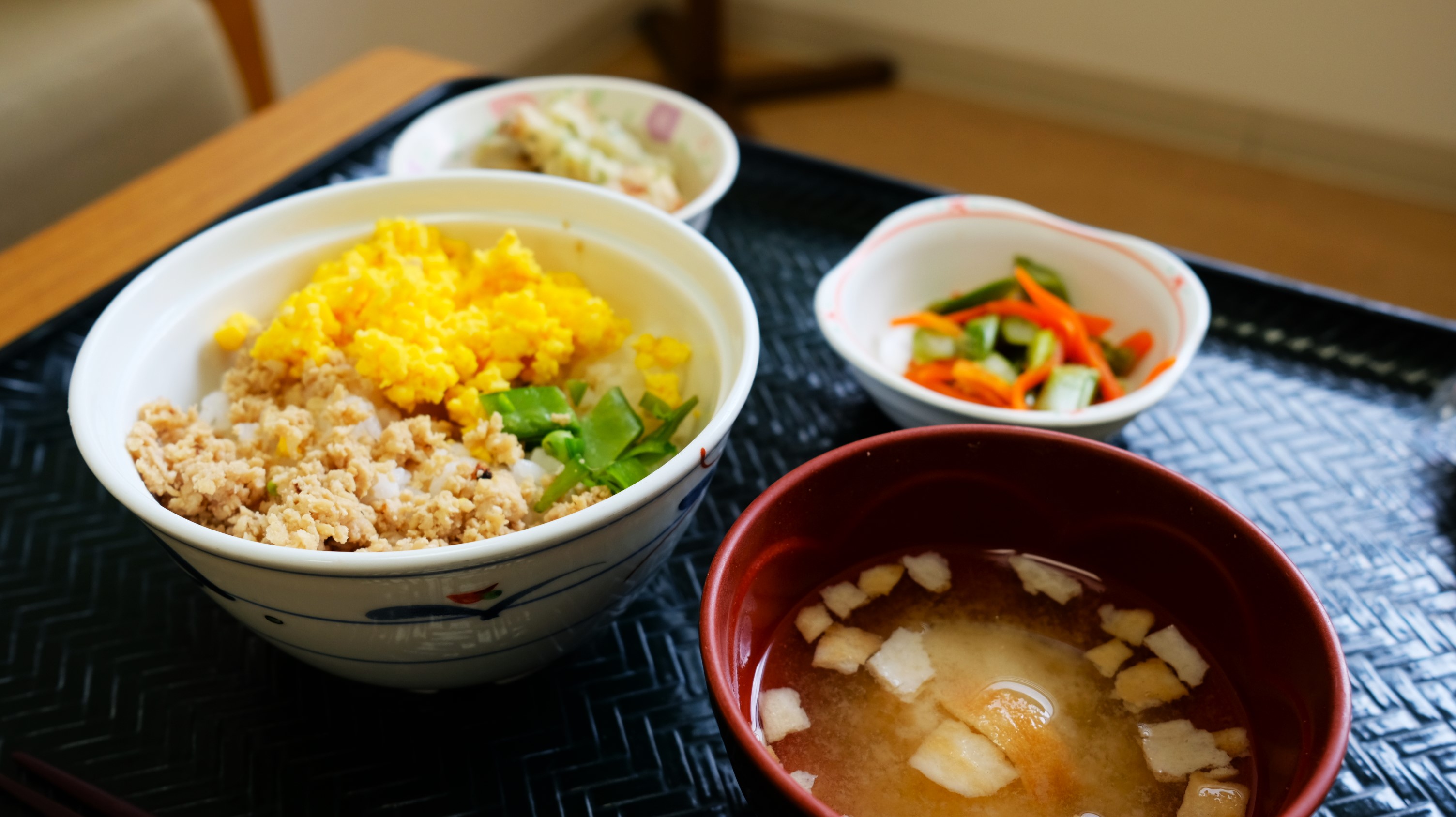 本日の昼食は三色丼です!
