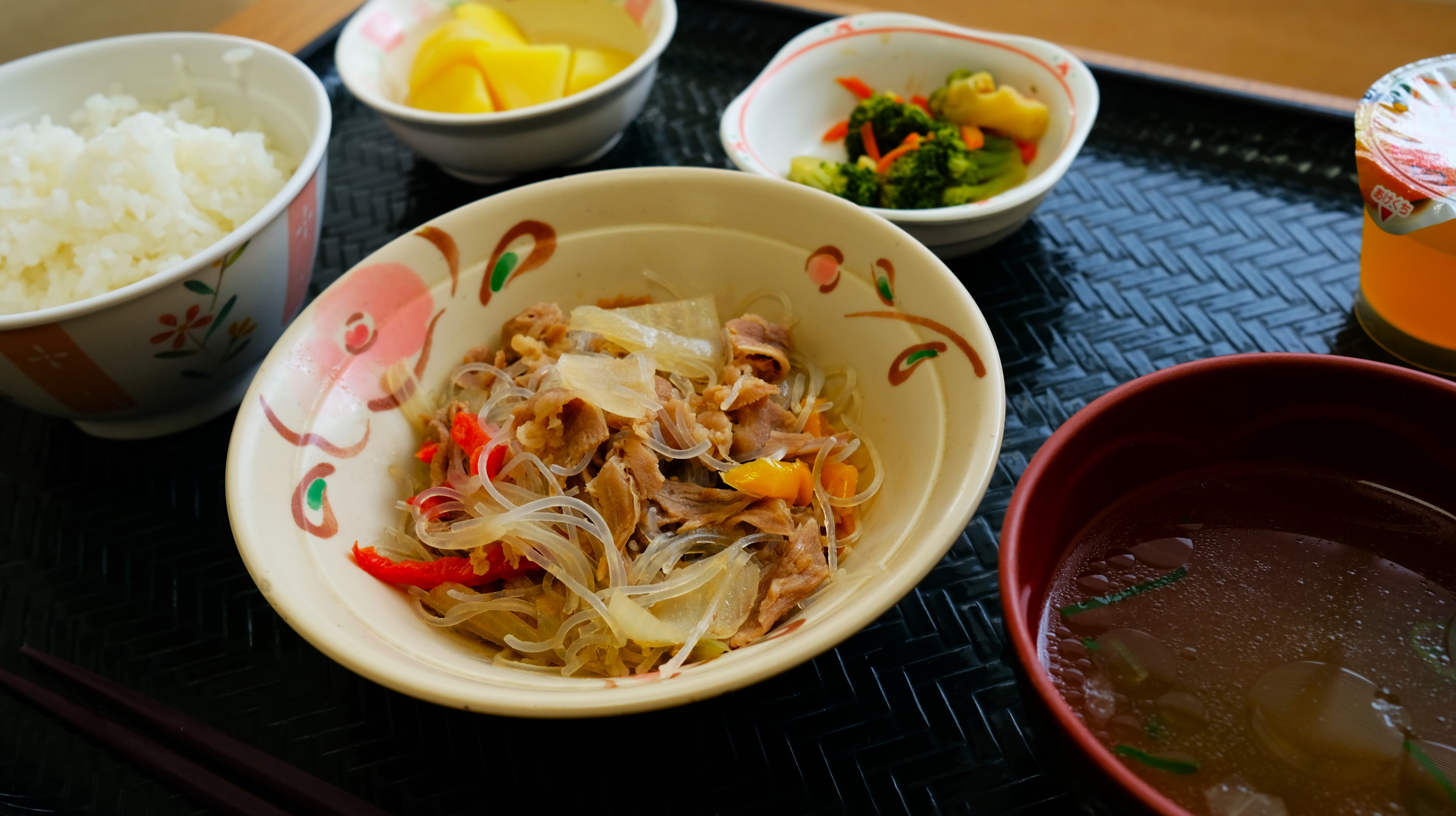 本日の昼食は選択メニュー、お肉の献立はプルコギ風炒めです。