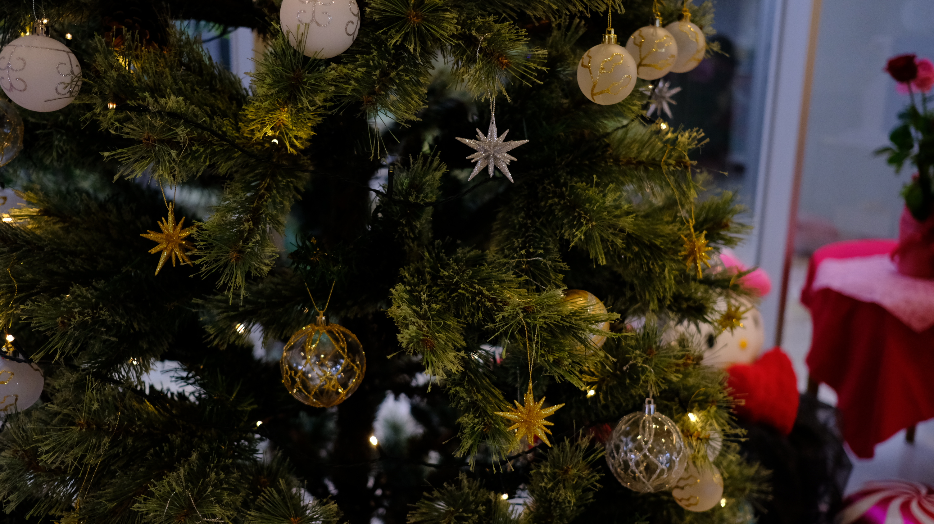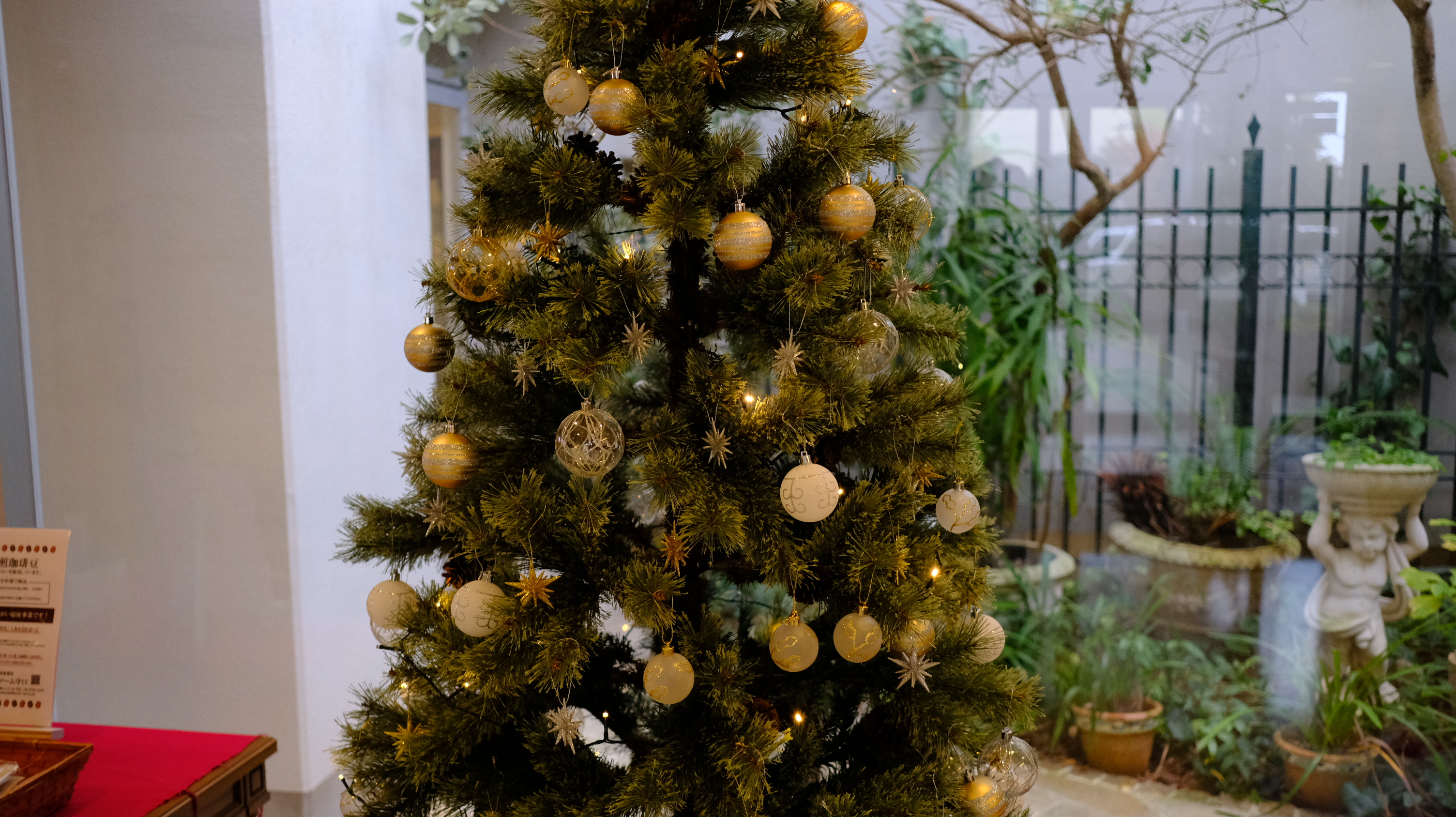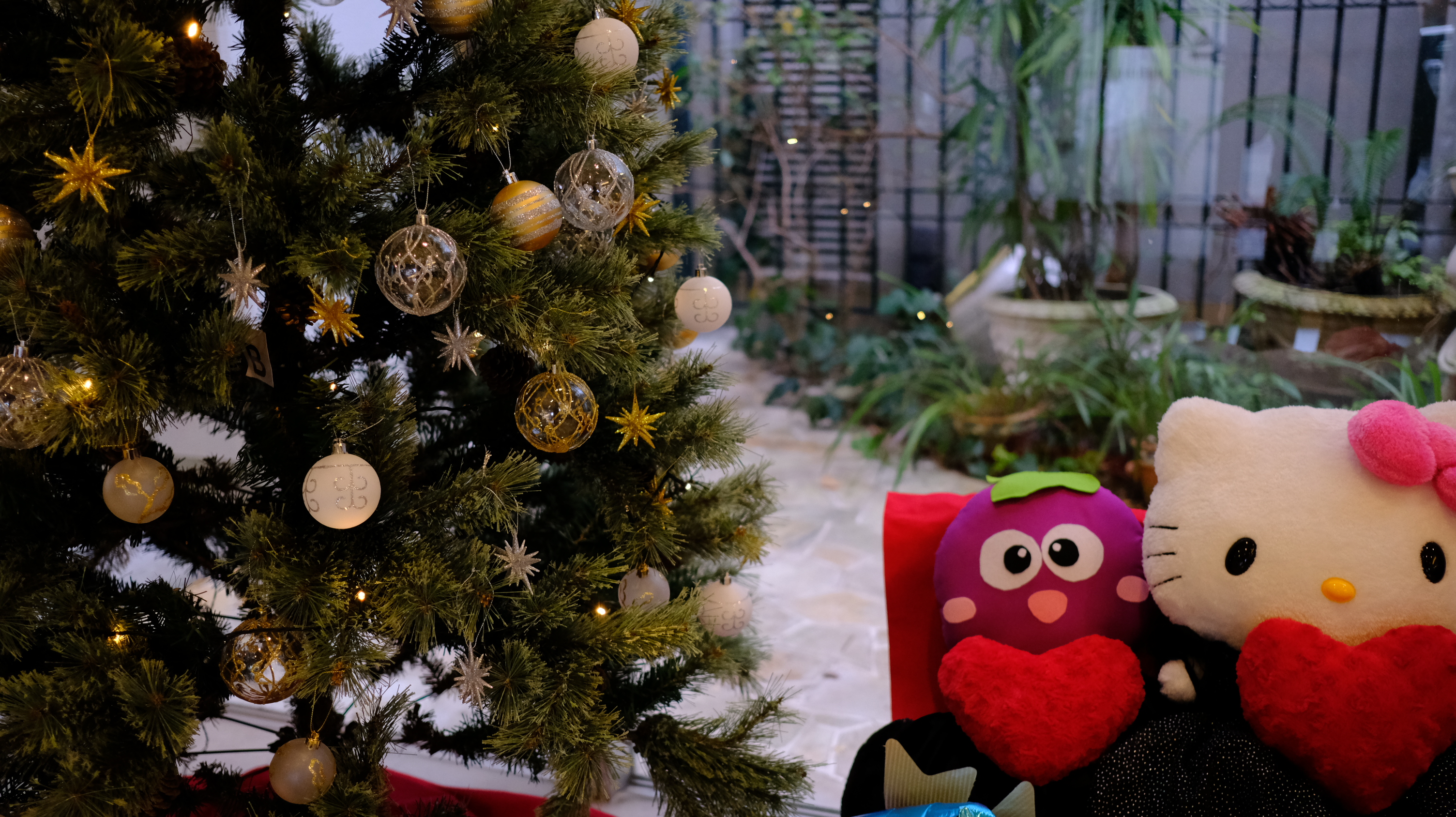 1Fロビーでクリスマスツリーとキティちゃんがお出迎えです!