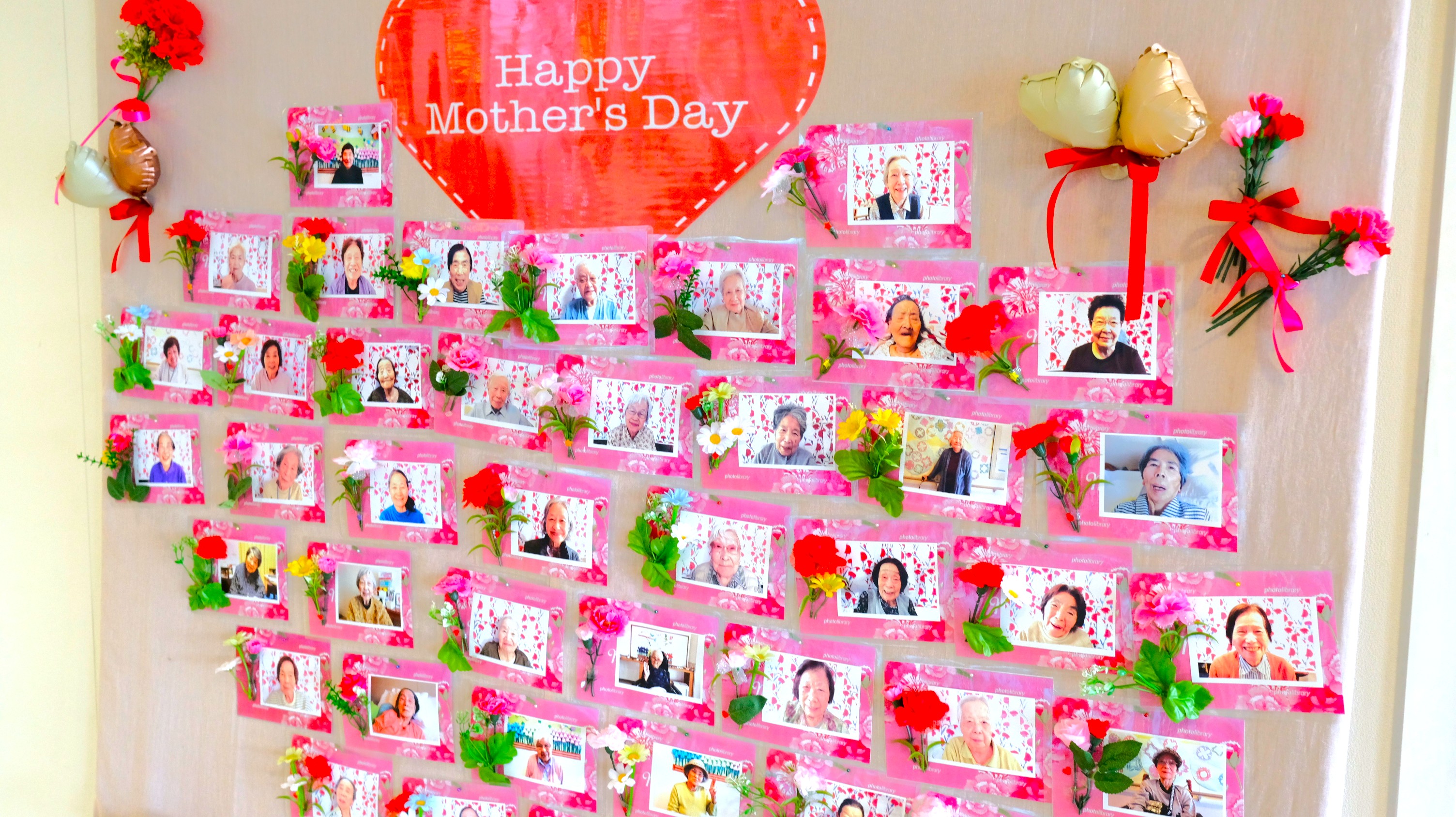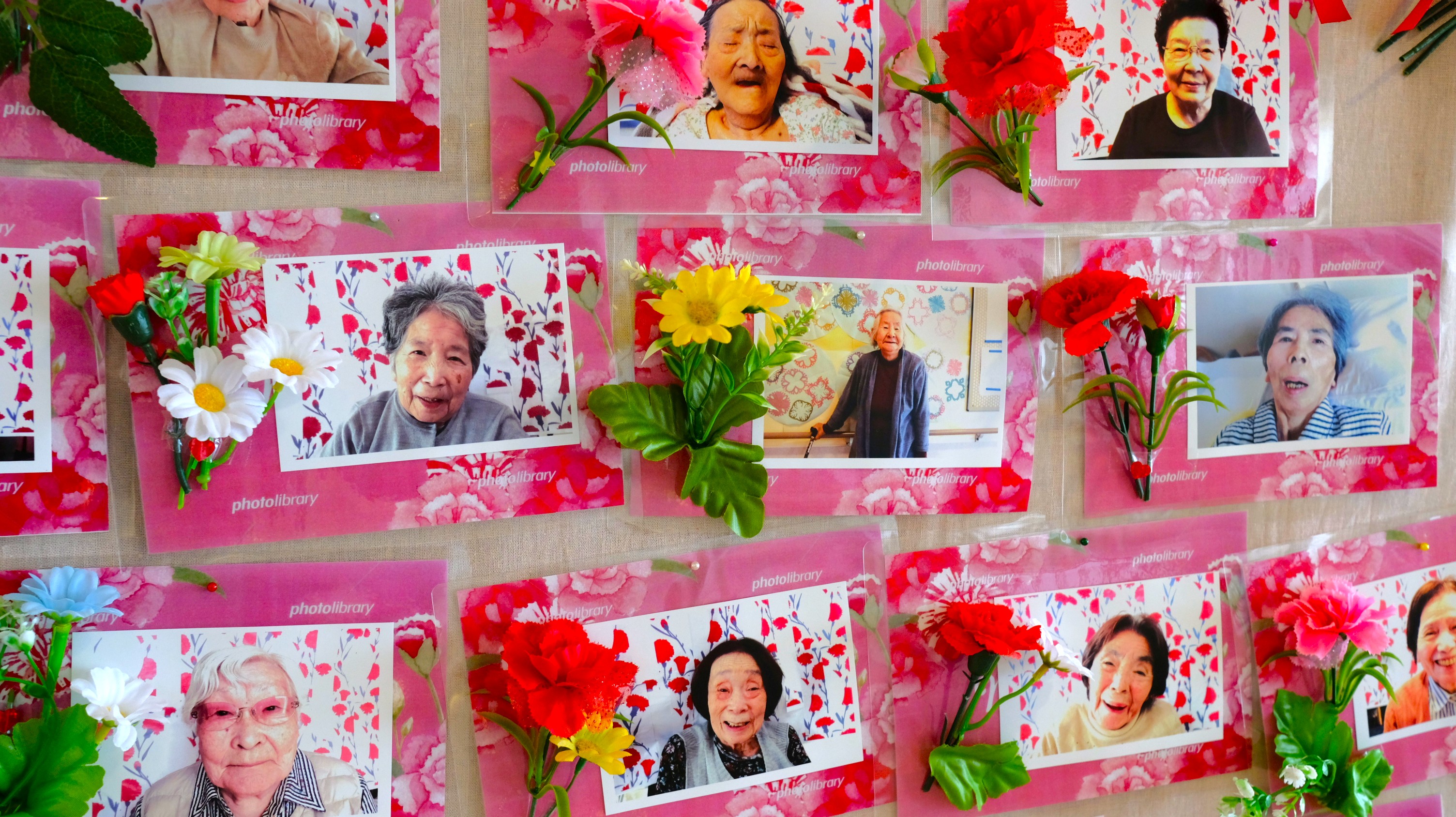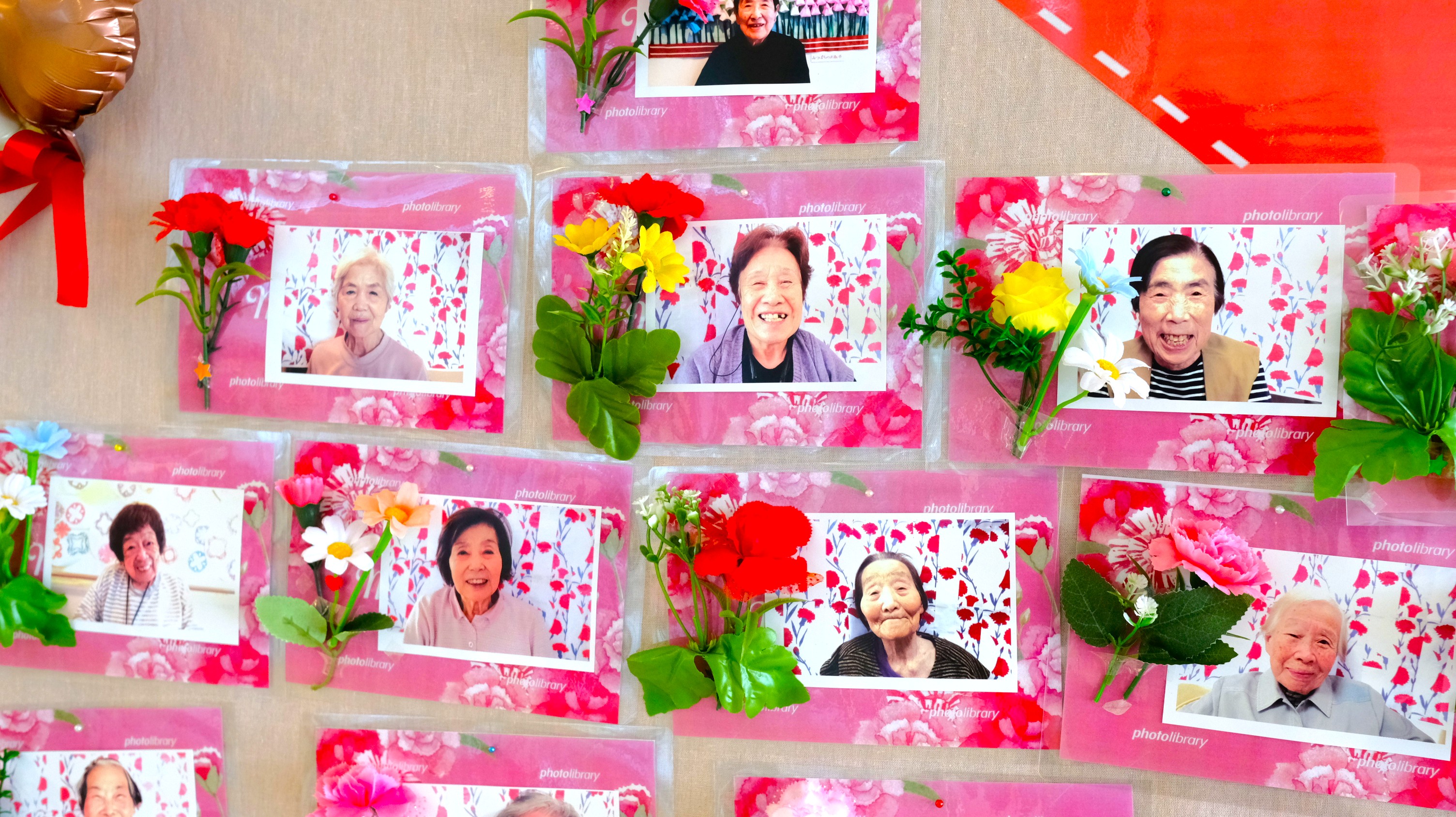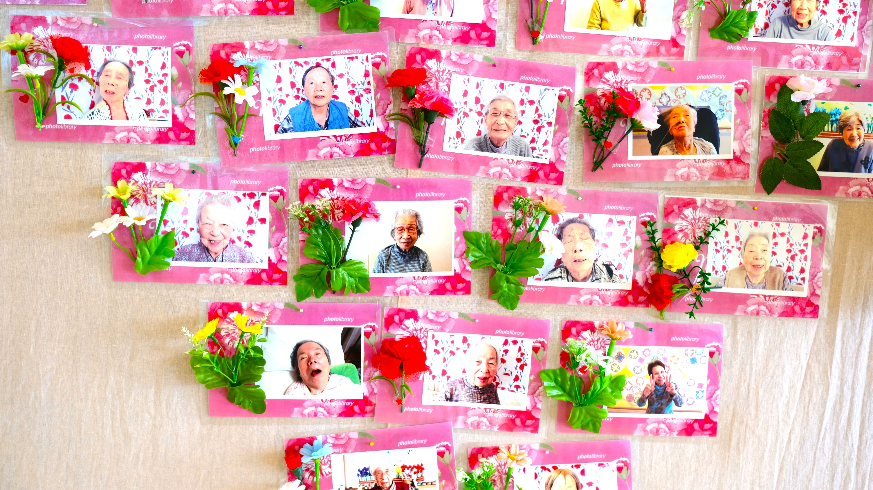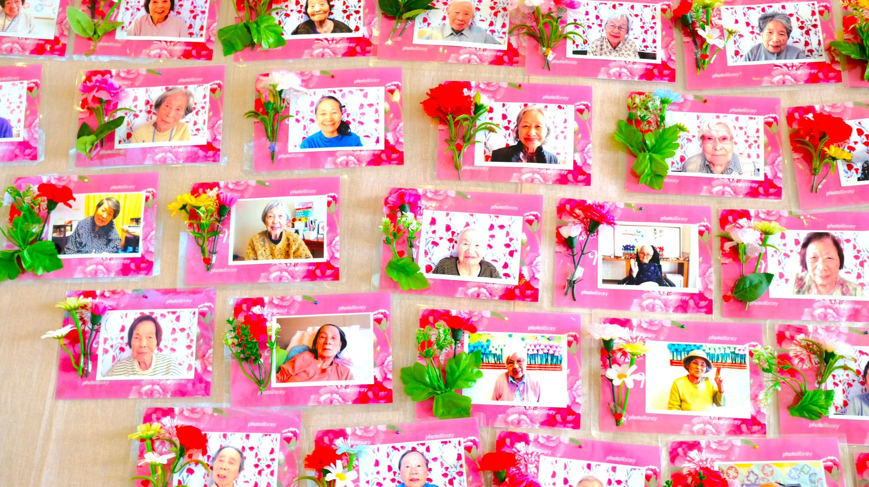 施設でもささやかなお祝いとして、撮らせていただいた写真をロビーに飾っています。肖像権上展示が不可な方は直接お渡ししています。
