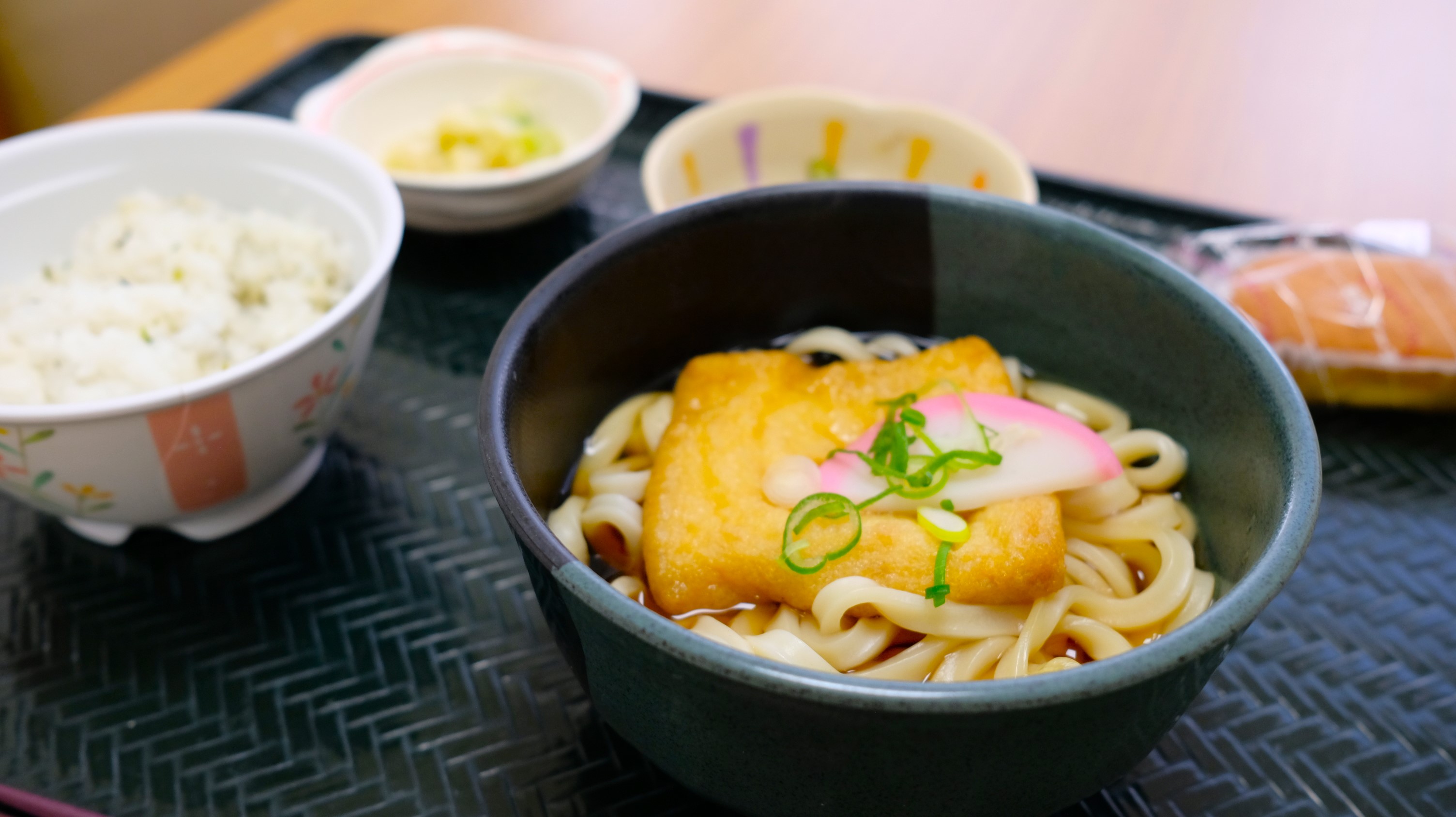 本日の昼食はきつねうどんです!