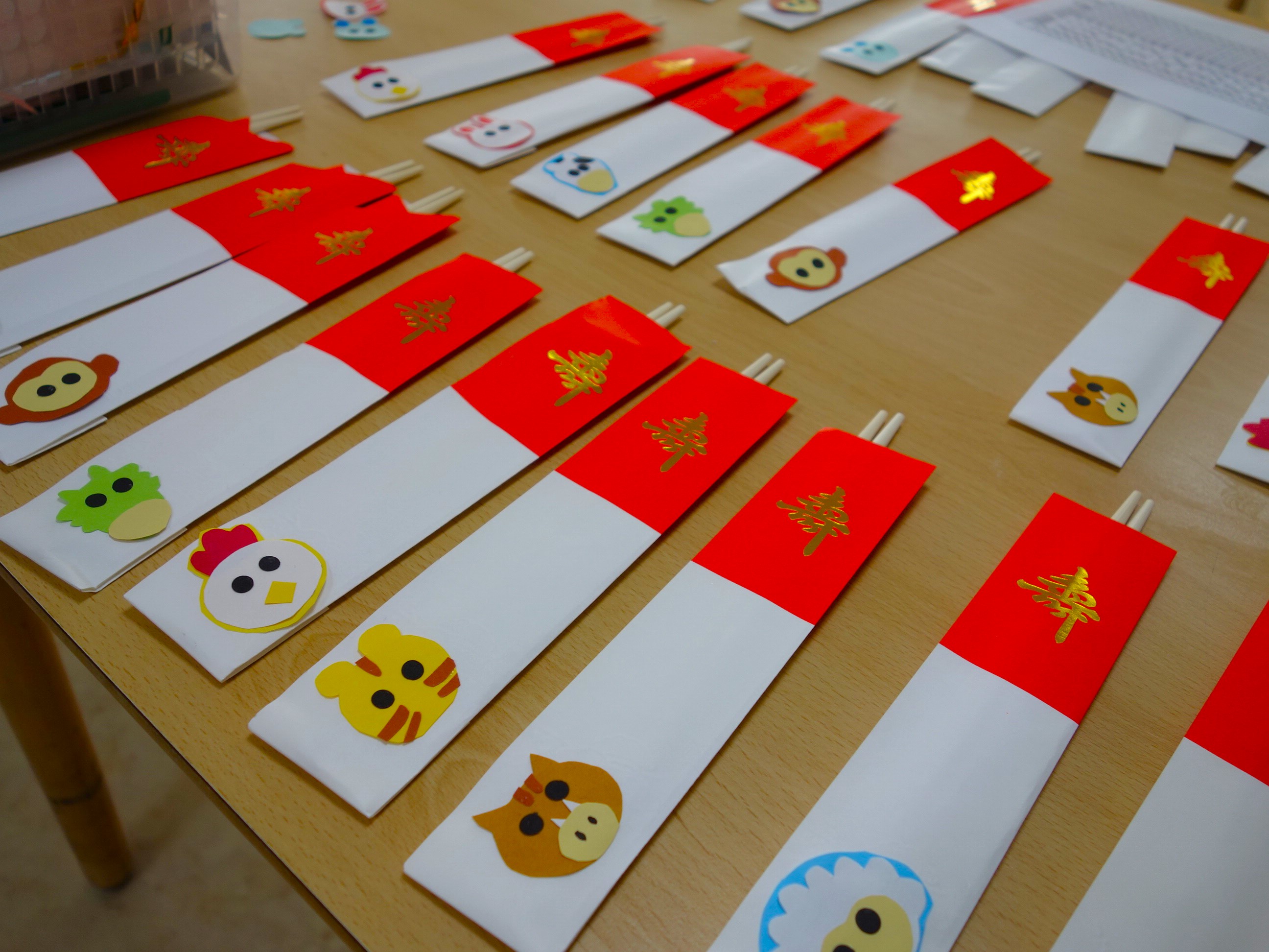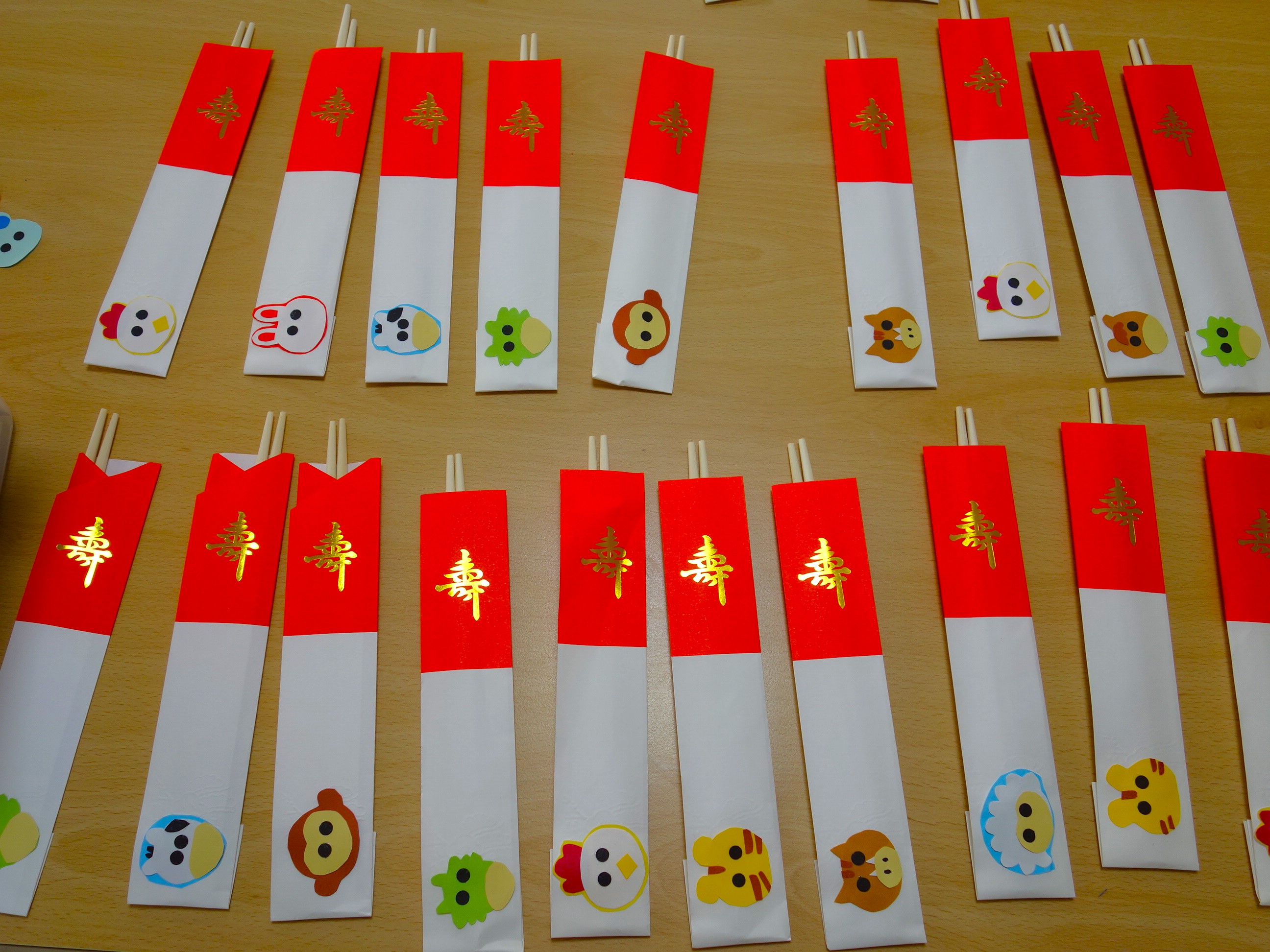 3F入居者様にお出しする祝箸に、スタッフが干支のイラストをつけて準備中です!