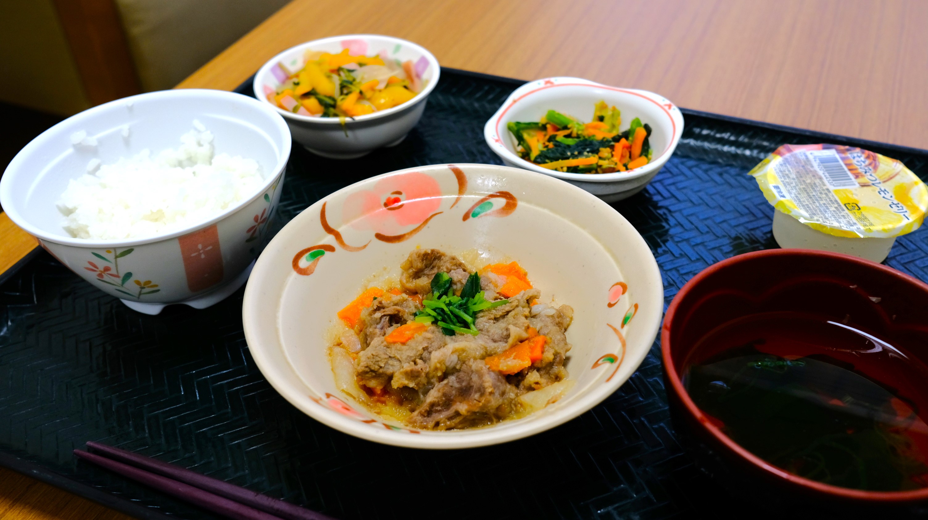 本日の昼食は選択メニュー、ご紹介するのはお肉のメニューです!