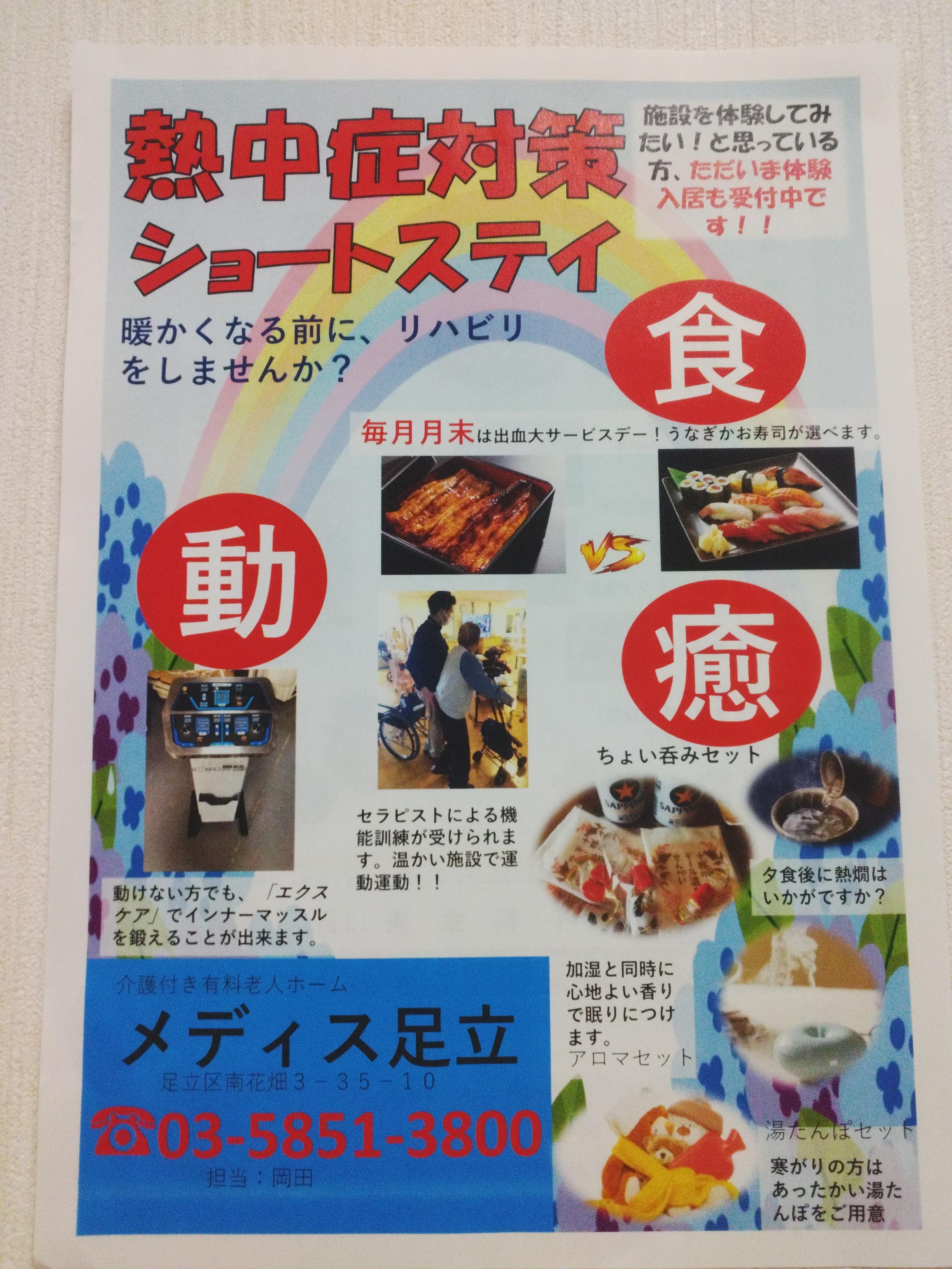 熱中症対策として、是非メディス足立をご活用下さい。