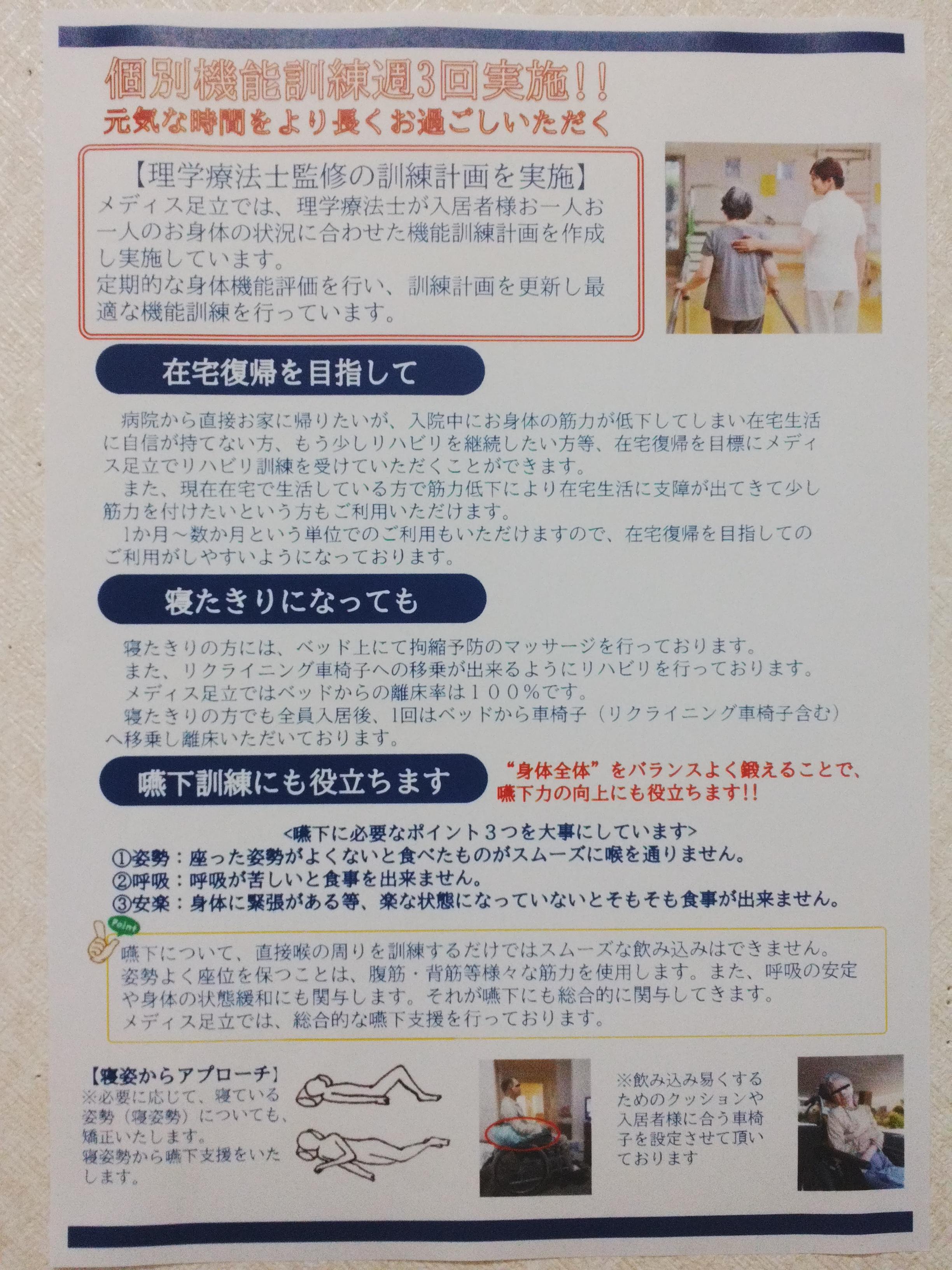 メディス足立 充実の個別機能訓練 実施中