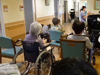 たくさんのご面会者も来訪される中、午後から2階のフロアで「体と口腔の体操」を行いました。