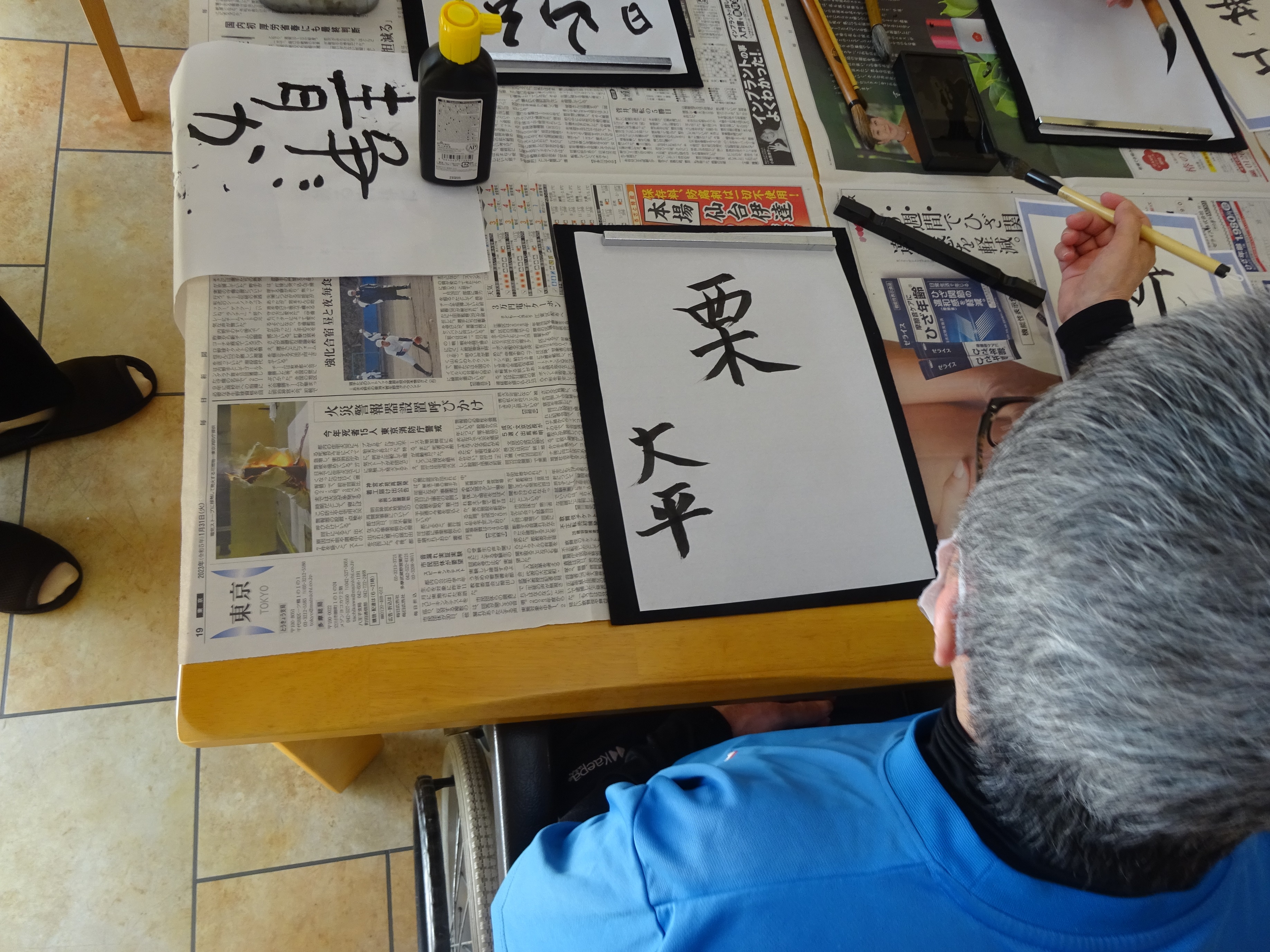 今日は書道の先生が来てくれて書道教室が開催されました。