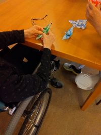 入居者様と一緒に折り紙です(^^) 鶴の折り方どうだったかな・・・と少し考えながら折られていました!色々な折り方をスタッフも勉強してきますね!また一緒に作りましょう(^^♪
