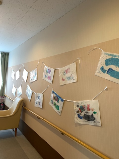 赤心幼稚園様・二葉幼稚園様・あんなかこども園様全部で70枚近い塗り絵を展示しています!
